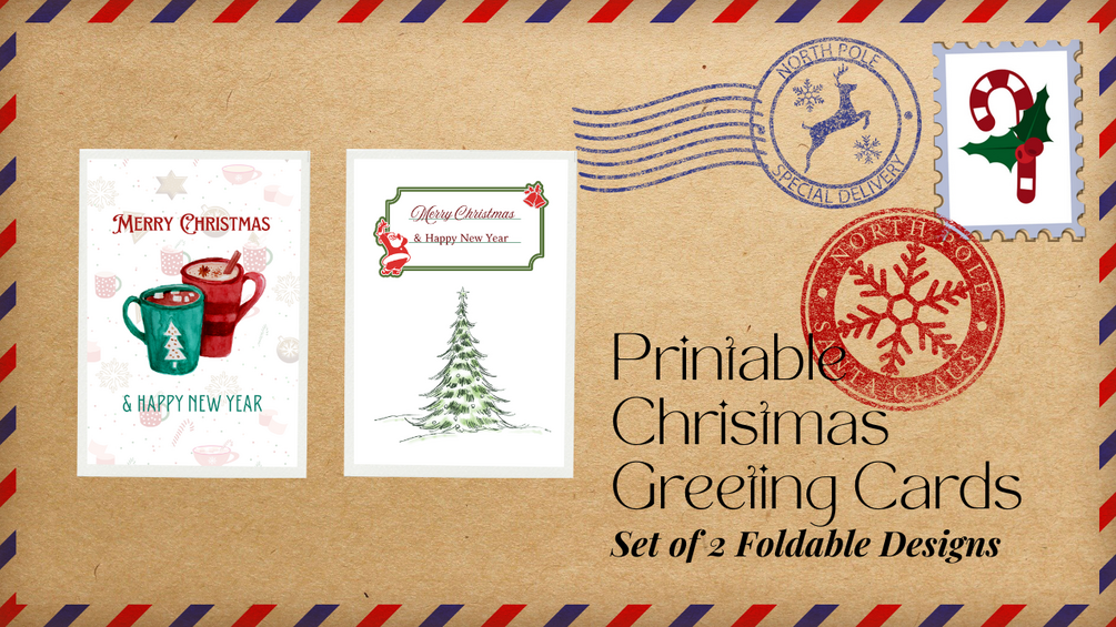 Printable Christmas Greeting Cards: Set of 2 Designs [2 Sizes Included + 2 Envelopes] 'Instant Download'